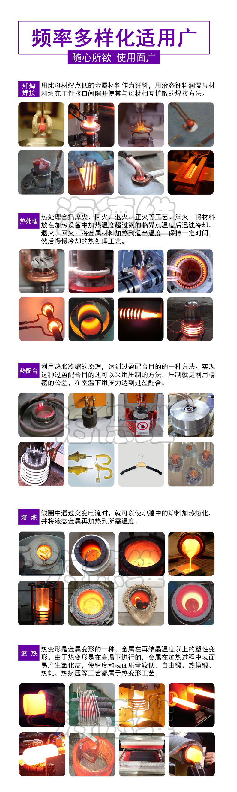 2、適用廣:可加熱各種金屬工件(根據(jù)工件形狀不同而制作感應(yīng)圈)